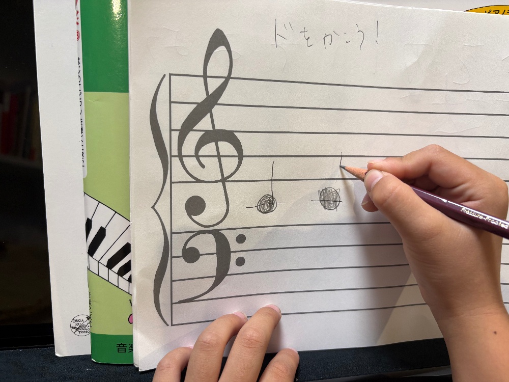 小学1年生のレッスンでは「ドの音」を書く練習をしました✏️